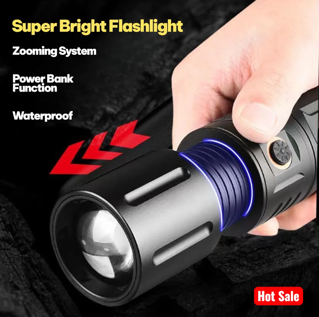 ⚡সুপার পাওয়ার LED রিচার্জেবল টর্চ লাইট উইথ পাওয়ার ব্যাংক।